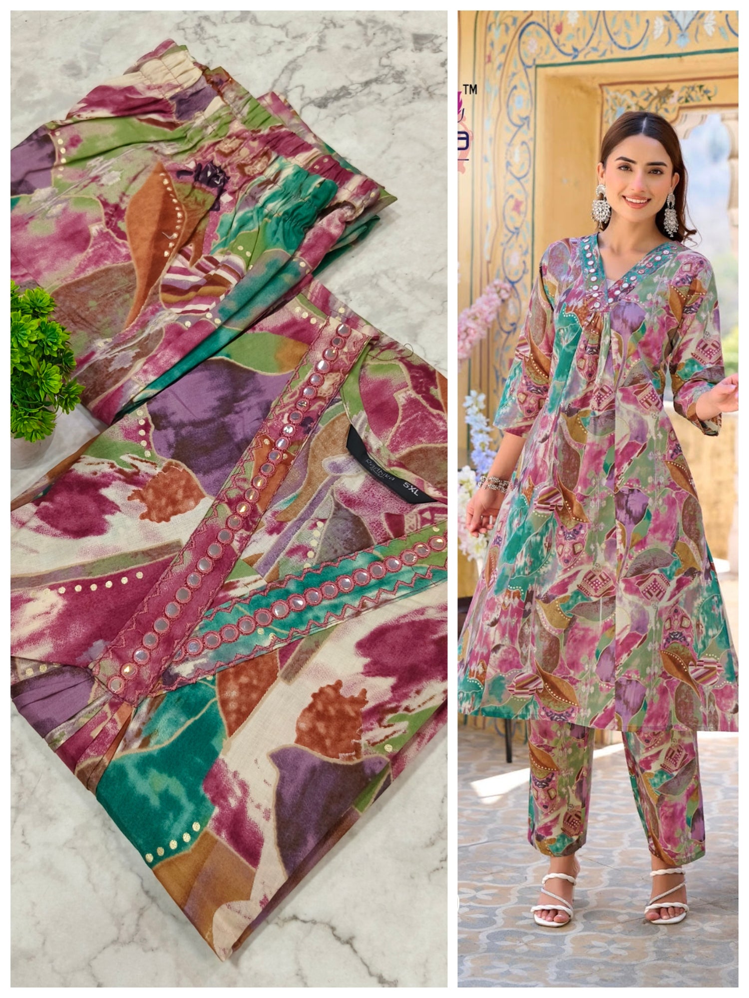 Cotton fabric Cord Set Kurta comes with pant 3/4 sleeve