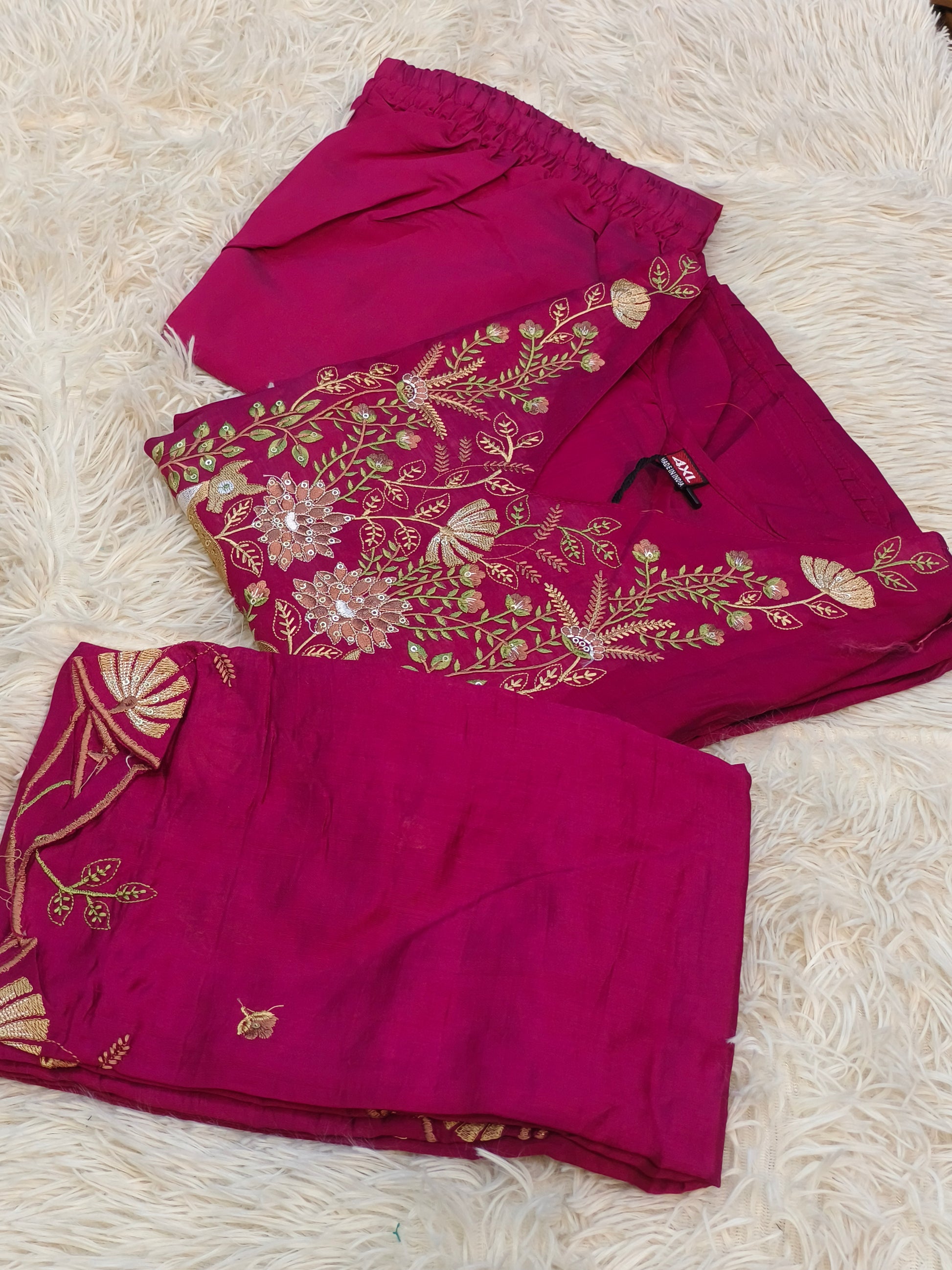 Mal Chanderi silk with Elegant designer 3pcs suits with gotta pati beautiful neck work.