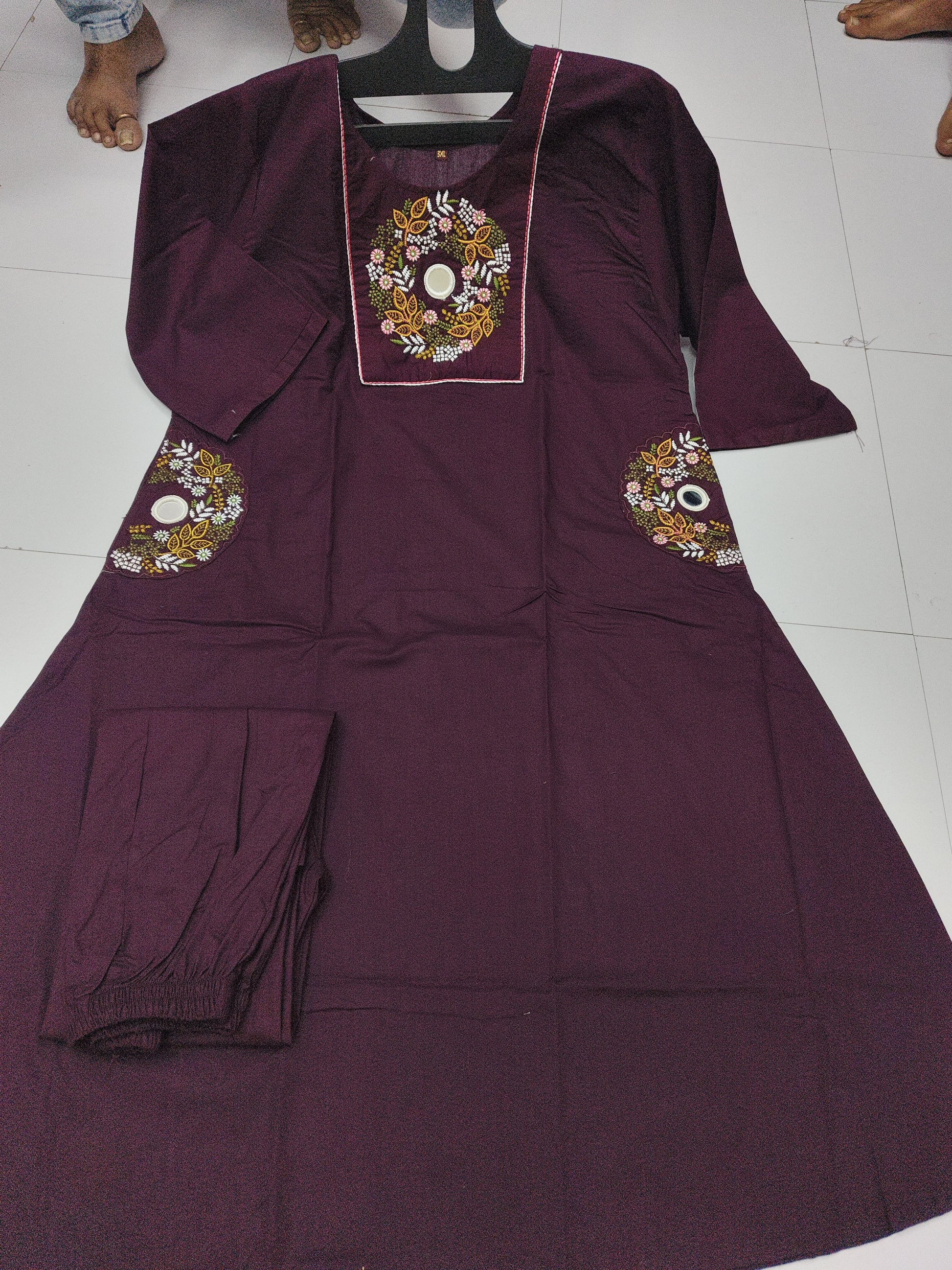 Cotton with Elegant designer 2pcs with beautiful neck work.
