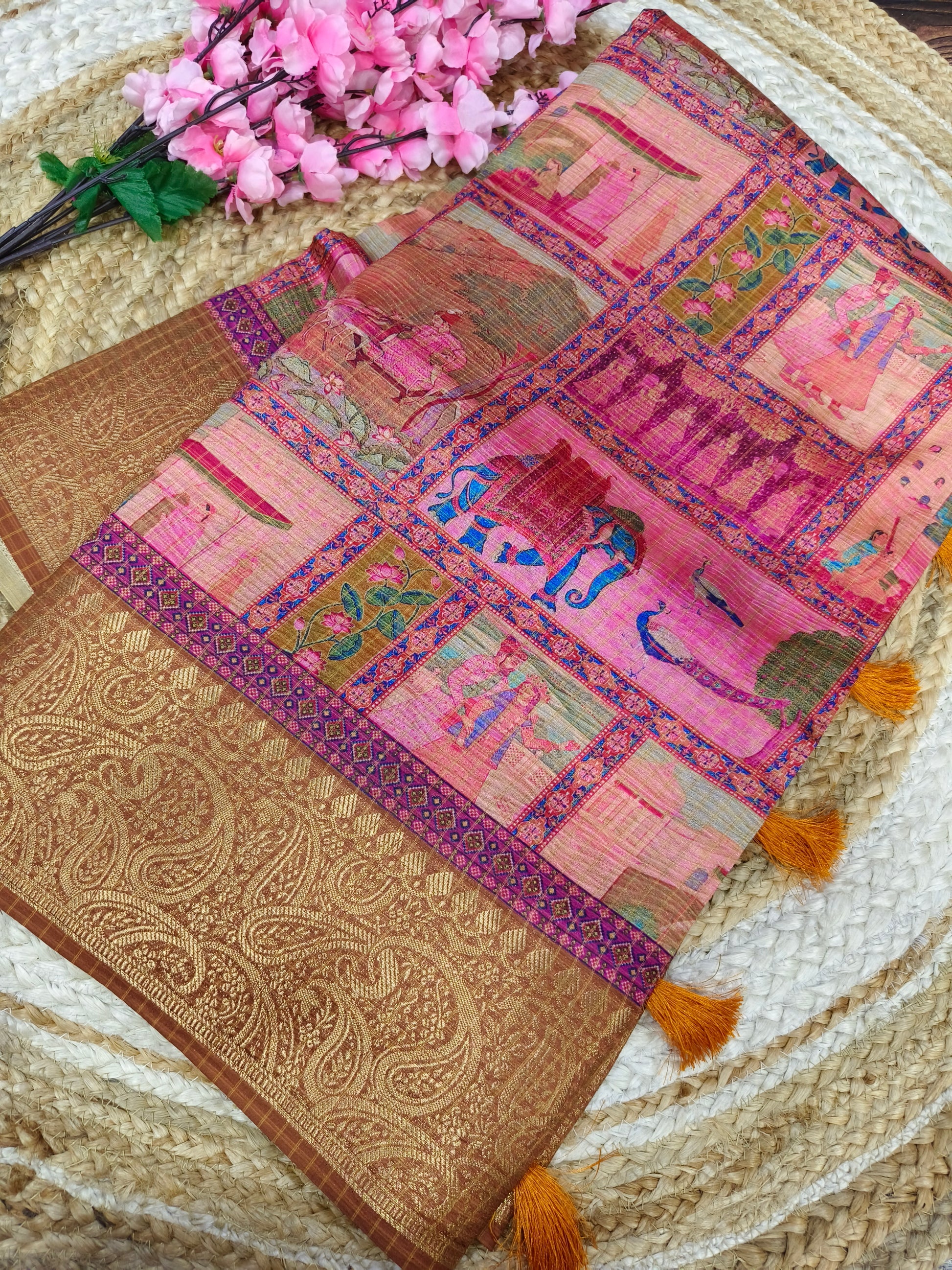 Perfect for festive occasions, cultural events, or statement office wear, this saree brings together heritage art and modern grace effortlessly.