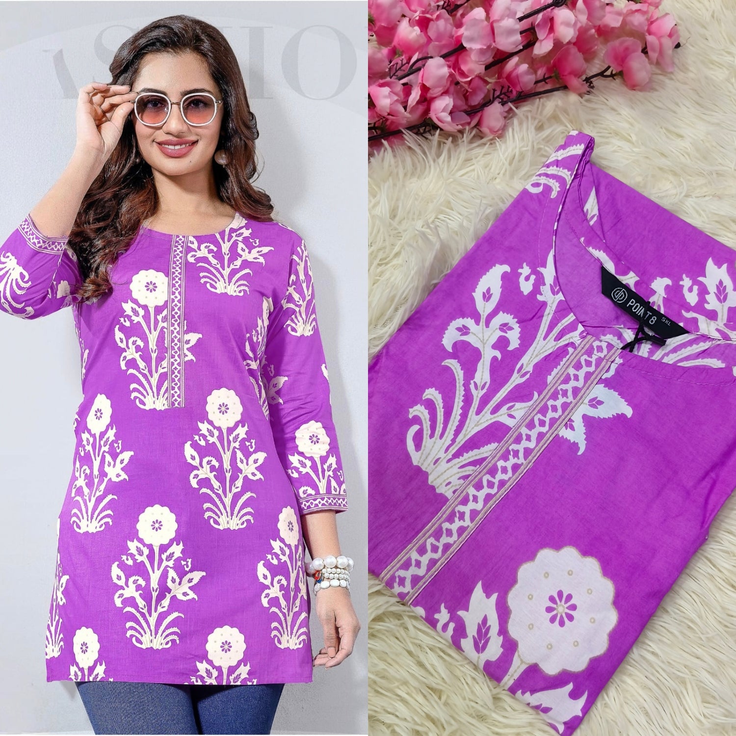 Pure Cotton fabric short Kurta comes with 3/4 sleeve