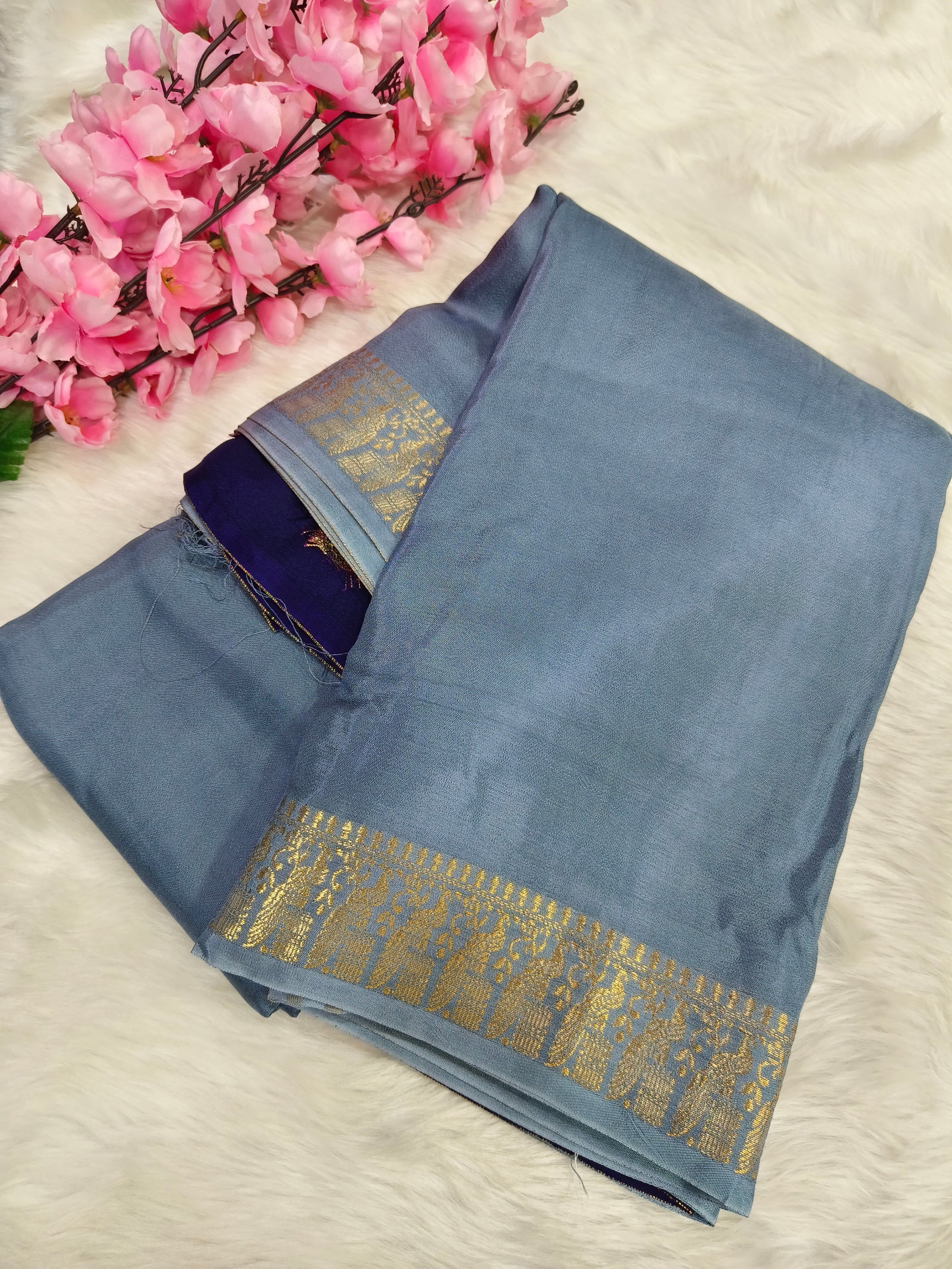 Viscose silk saree These sarees are renowned for their lightweight, flowy fabric, and ease of draping. They often feature minimalistic designs with delicate buttis and borders with single-line peacock motifs.