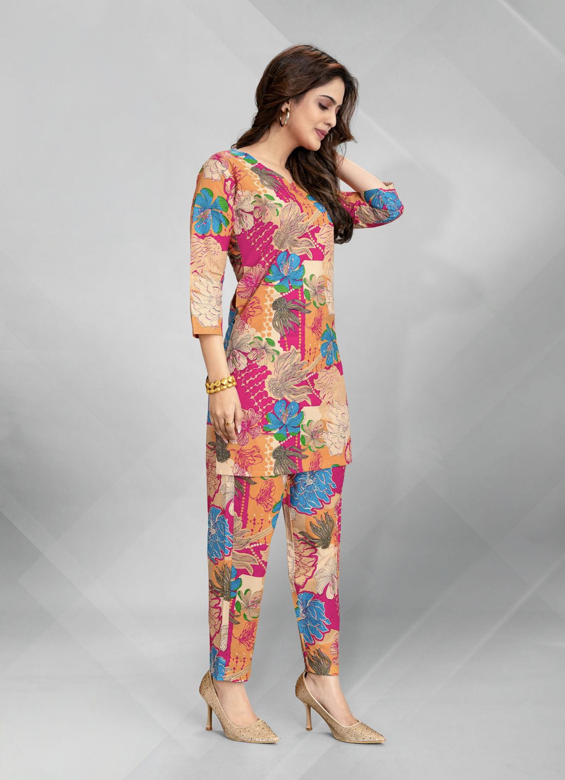 Cotton fabric Cord Set Kurta comes with pant 3/4 sleeve