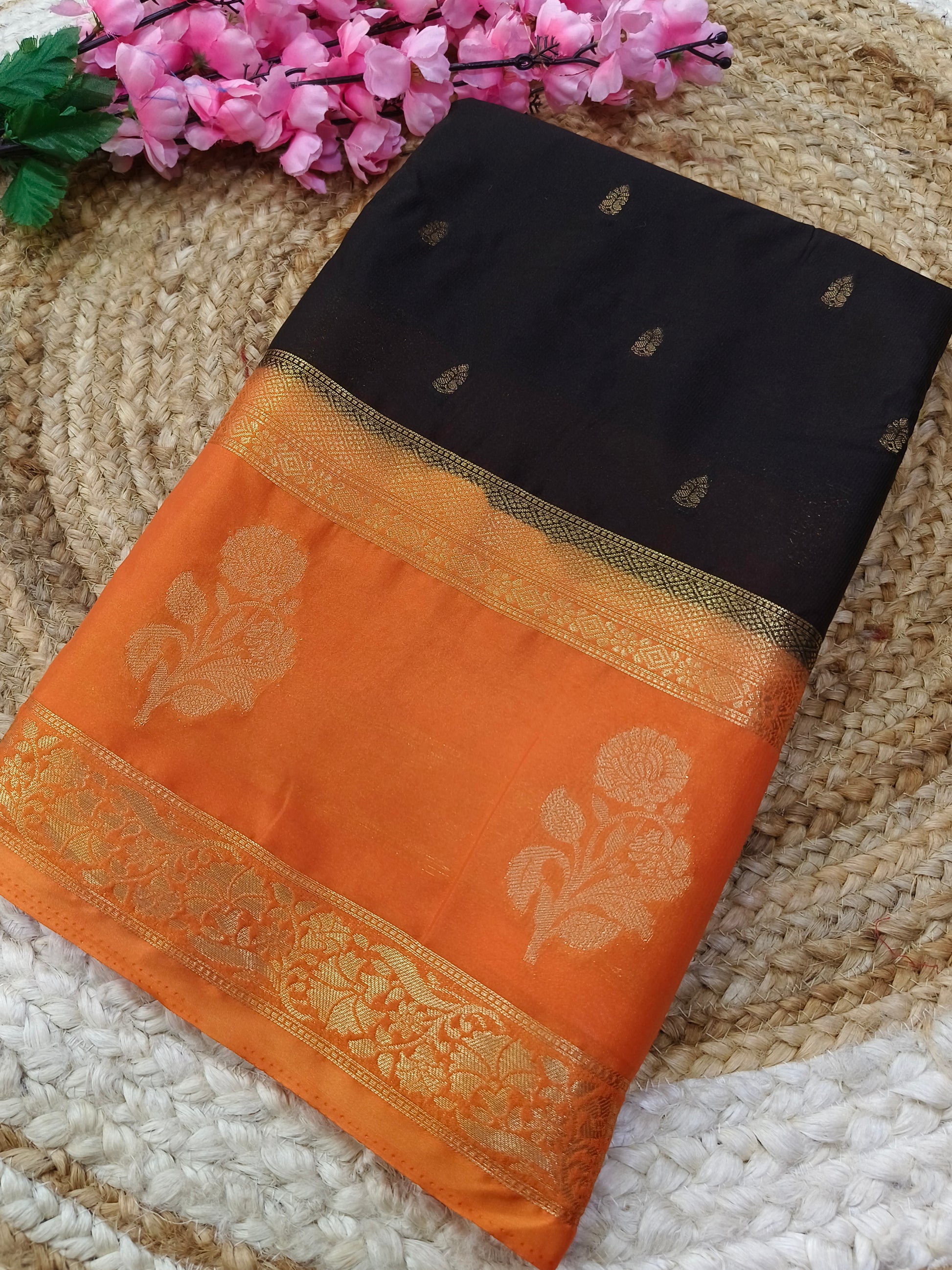 Step into timeless elegance with this stunning semi Mysore crepe silk sarees with beautiful zari woven weaving border.