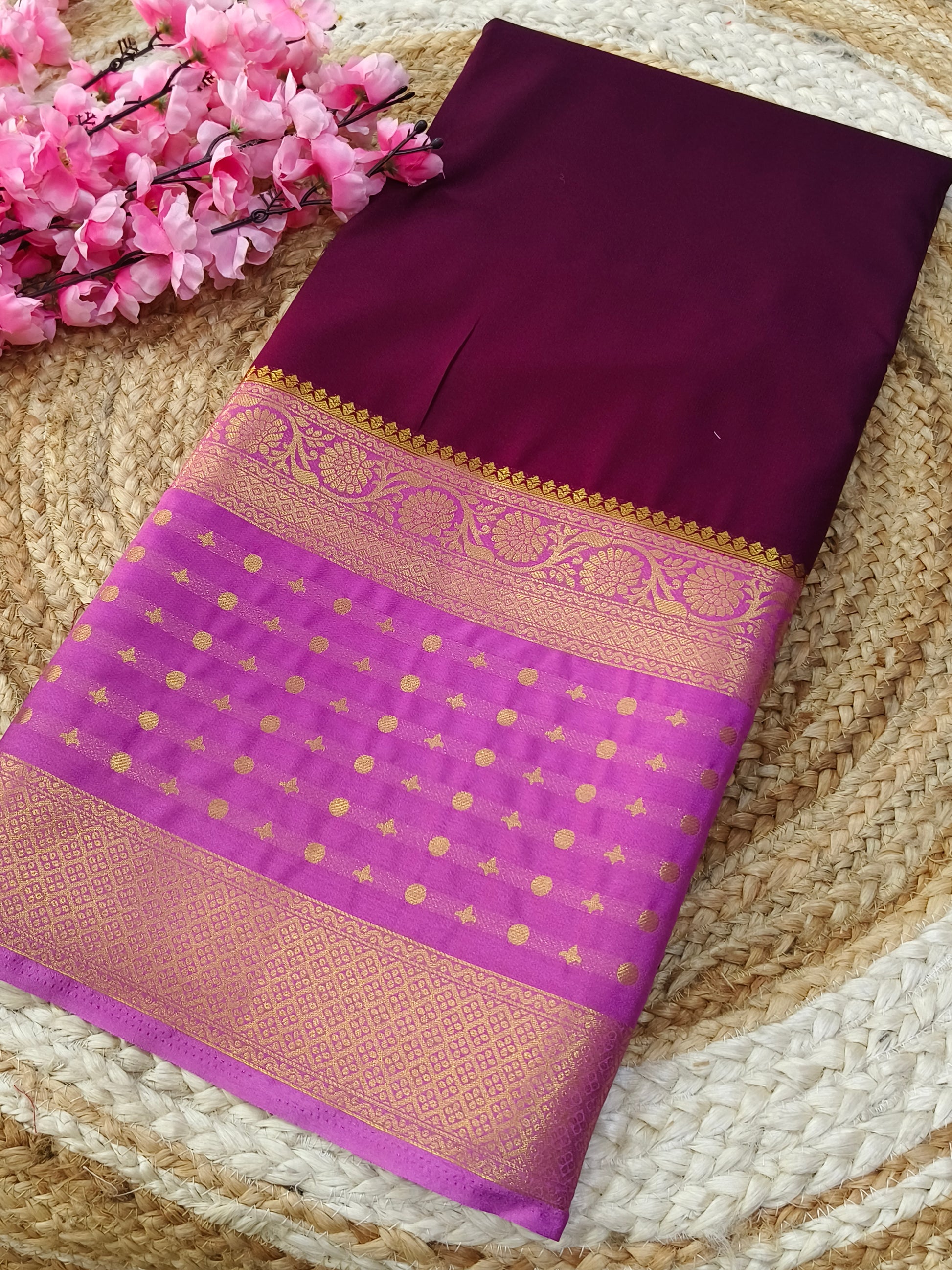 Step into timeless elegance with this stunning semi Mysore crepe silk sarees with beautiful zari woven weaving border.