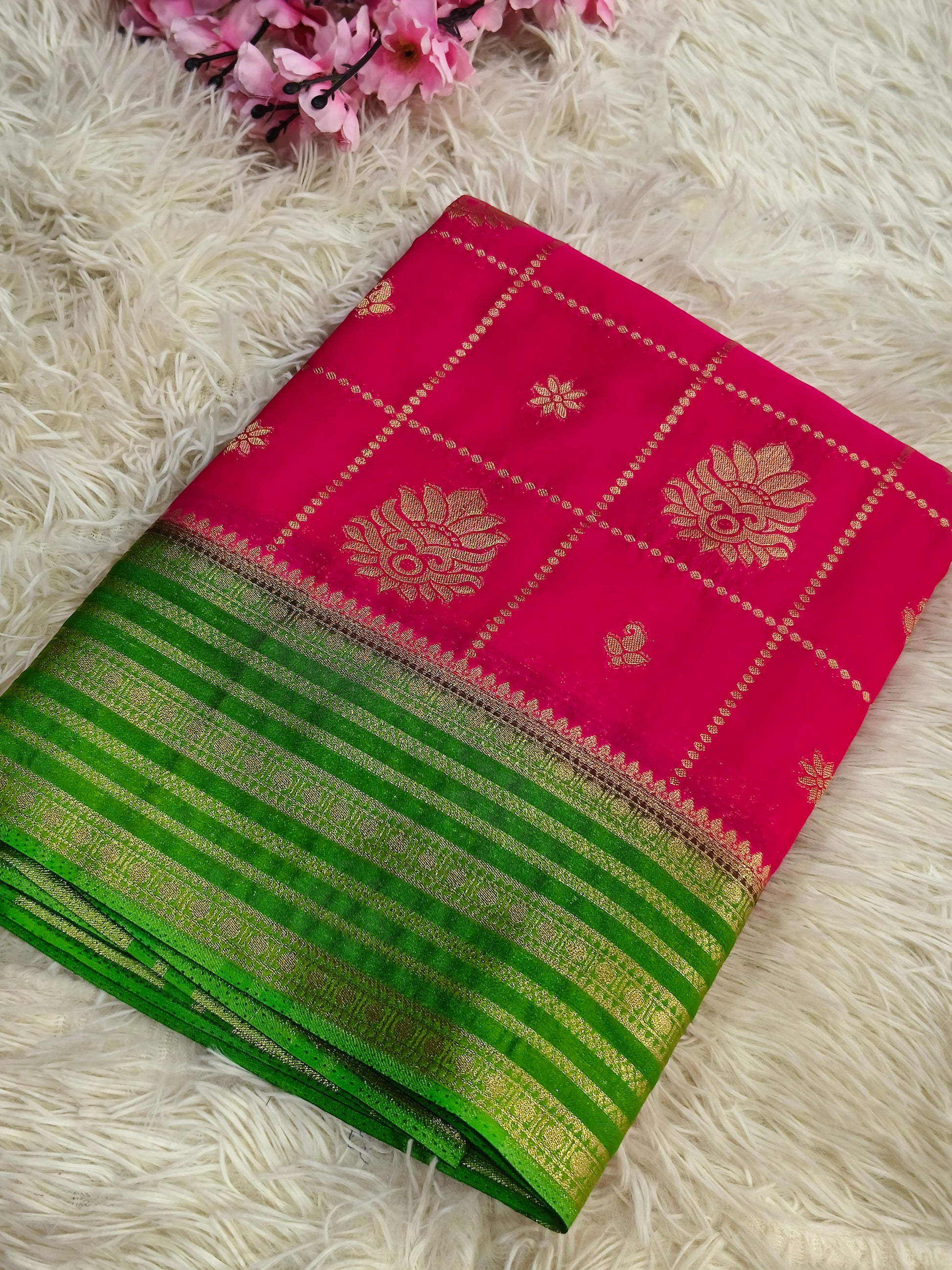 Pink With Green semi Mysore crepe georgette silk saree
