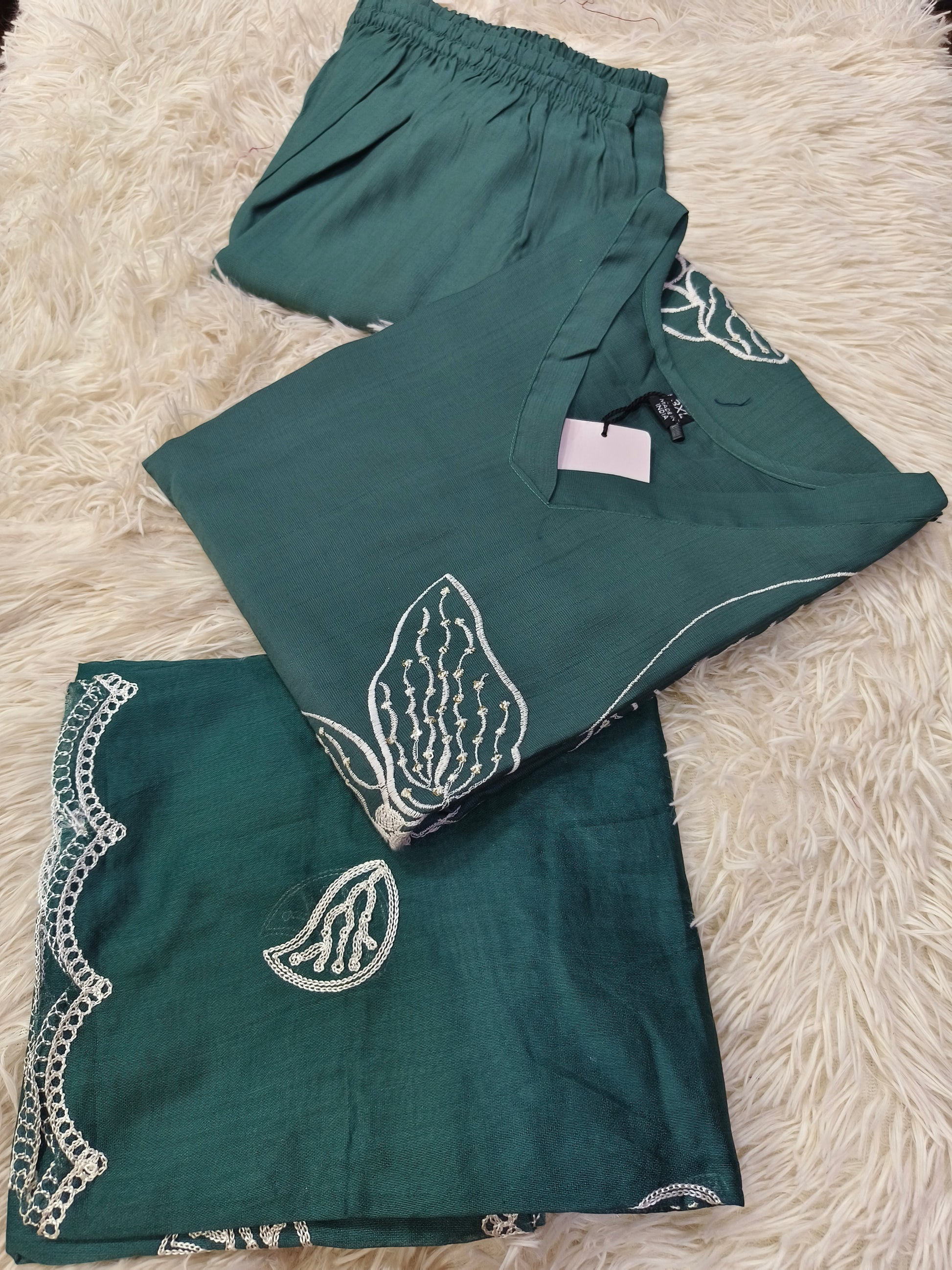 Vatican silk with Elegant designer 3pcs suits with gotta pati beautiful neck work.