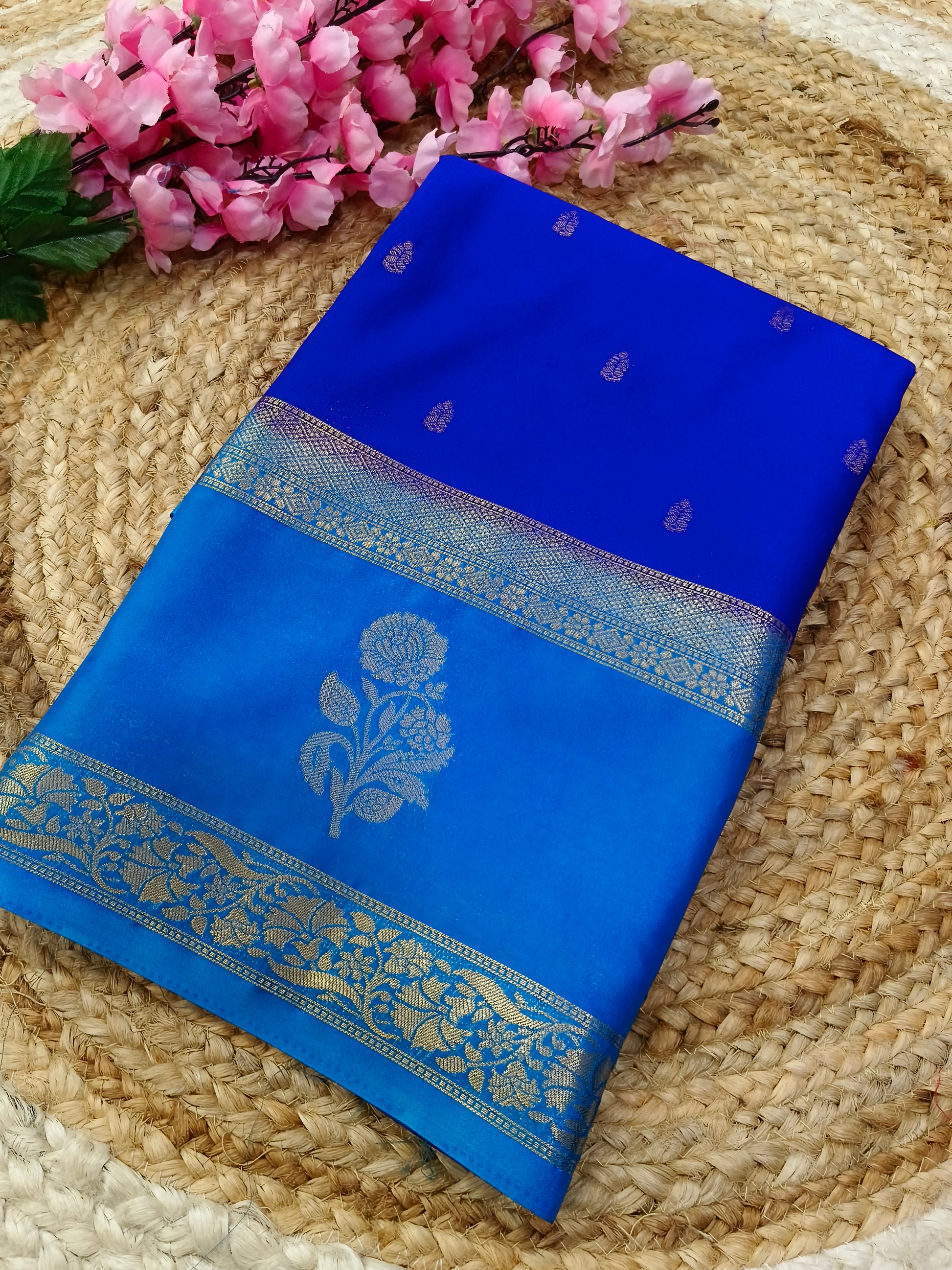 Royal Blue with Sky Blue semi Mysore crepe silk saree