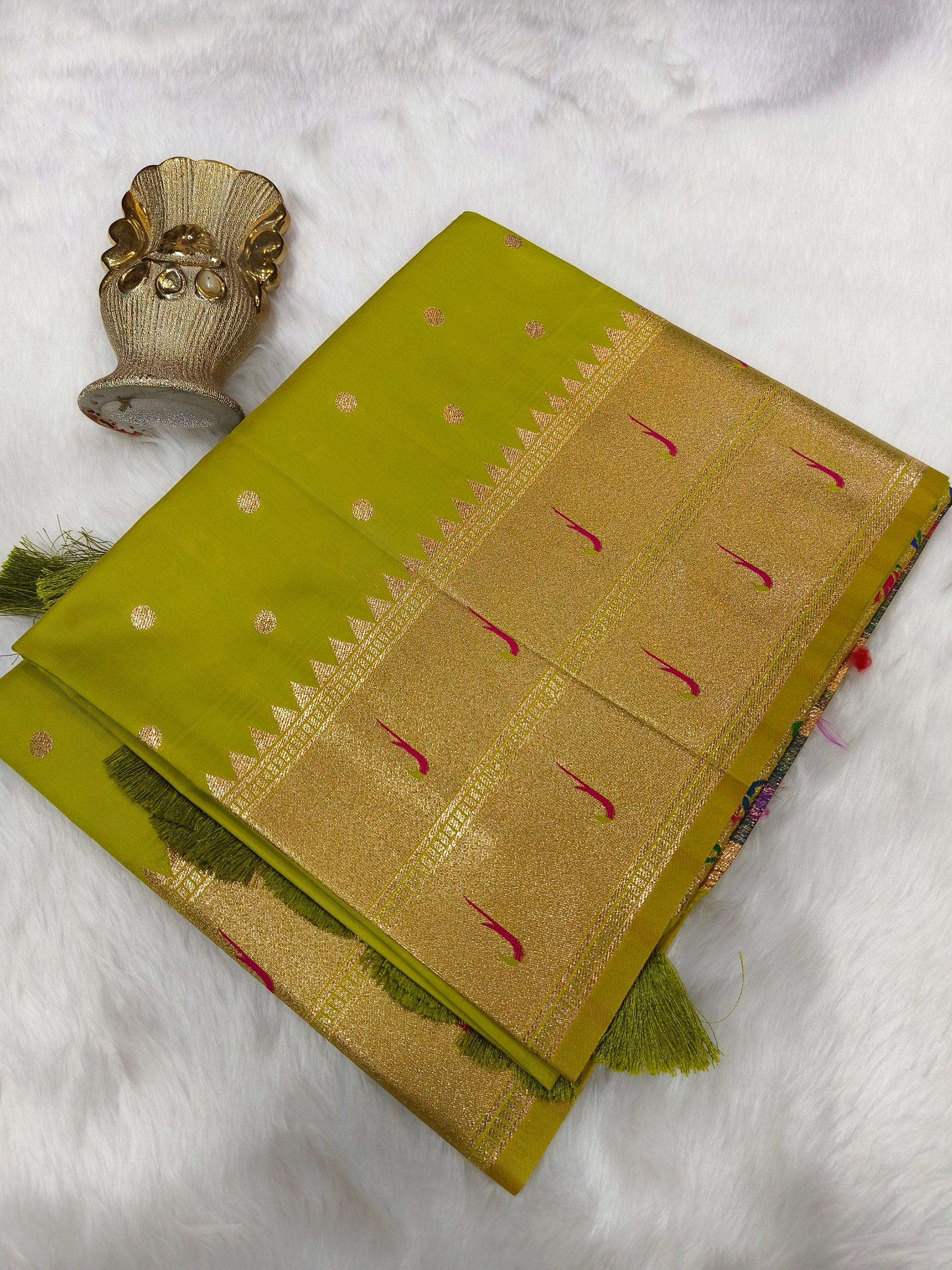 - Border: Golden Zari Weaving