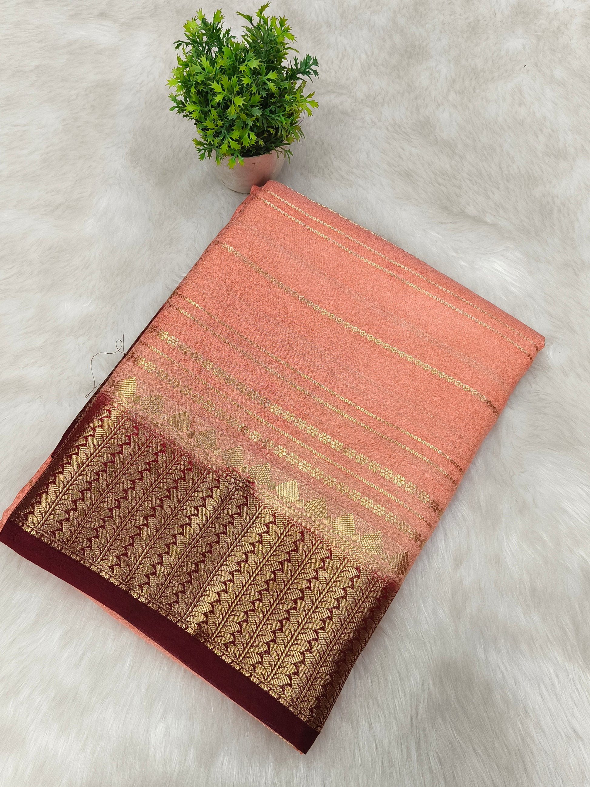 Peach With wine semi Mysore crepe silk saree