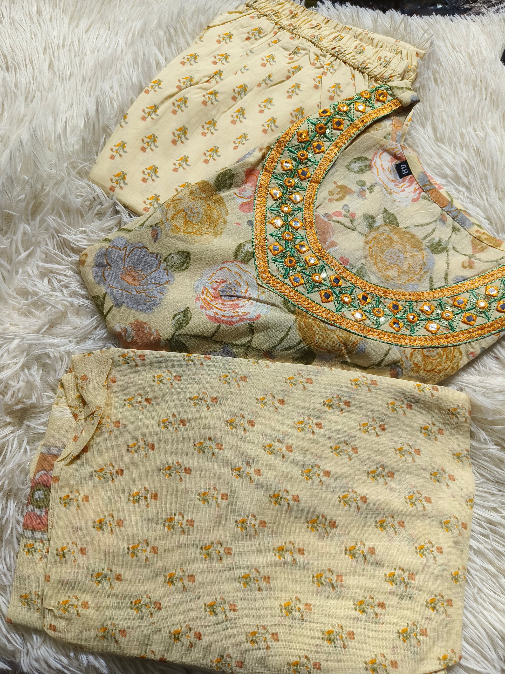 Cotton fabric Cord Set Kurta comes with pant 3/4 sleeve