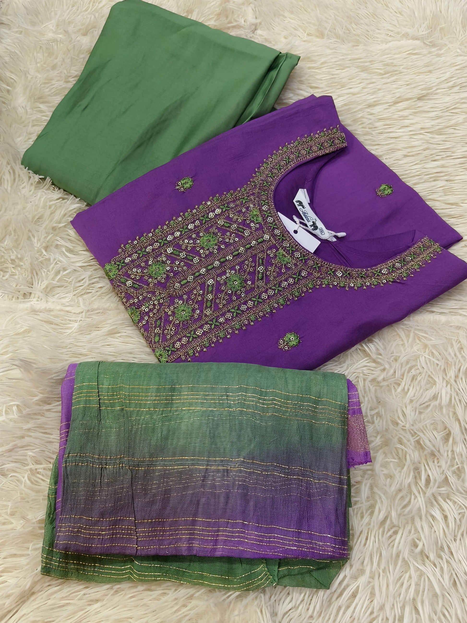 Mal Chanderi silk with Elegant designer 3pcs suits with gotta pati beautiful neck work.