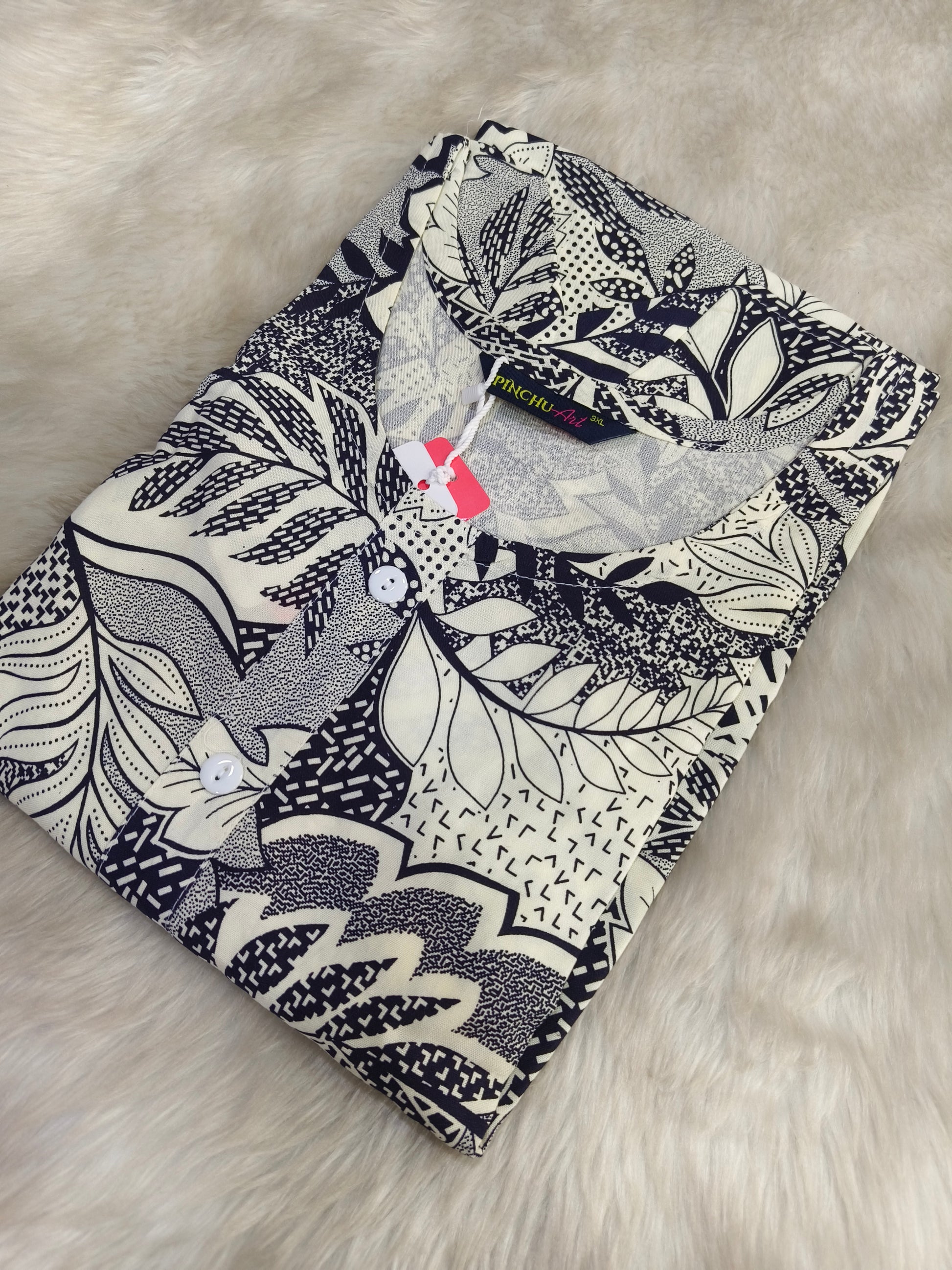 White with black Designer Rayon Kurti