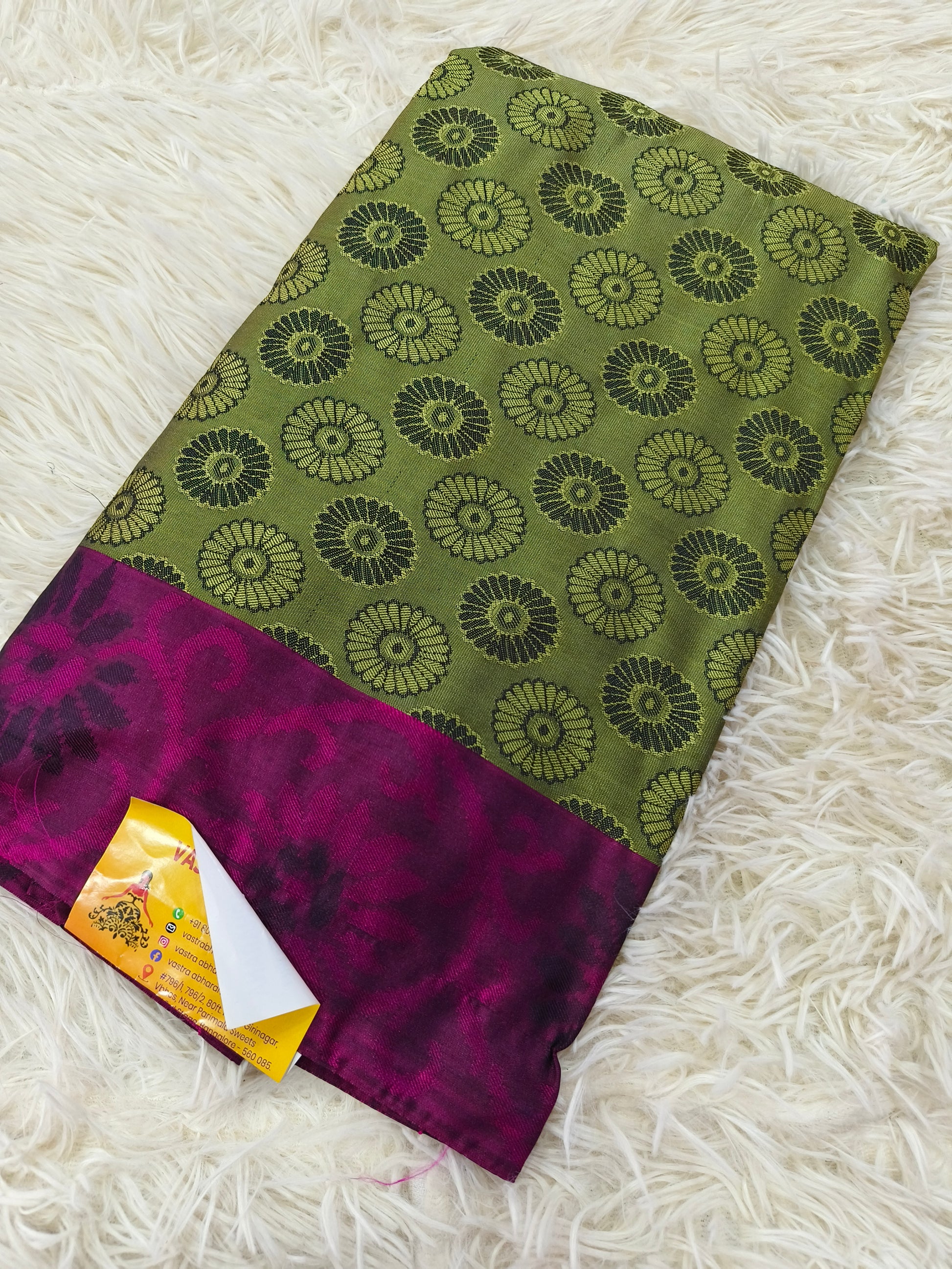 Green with wine soft silk Saree