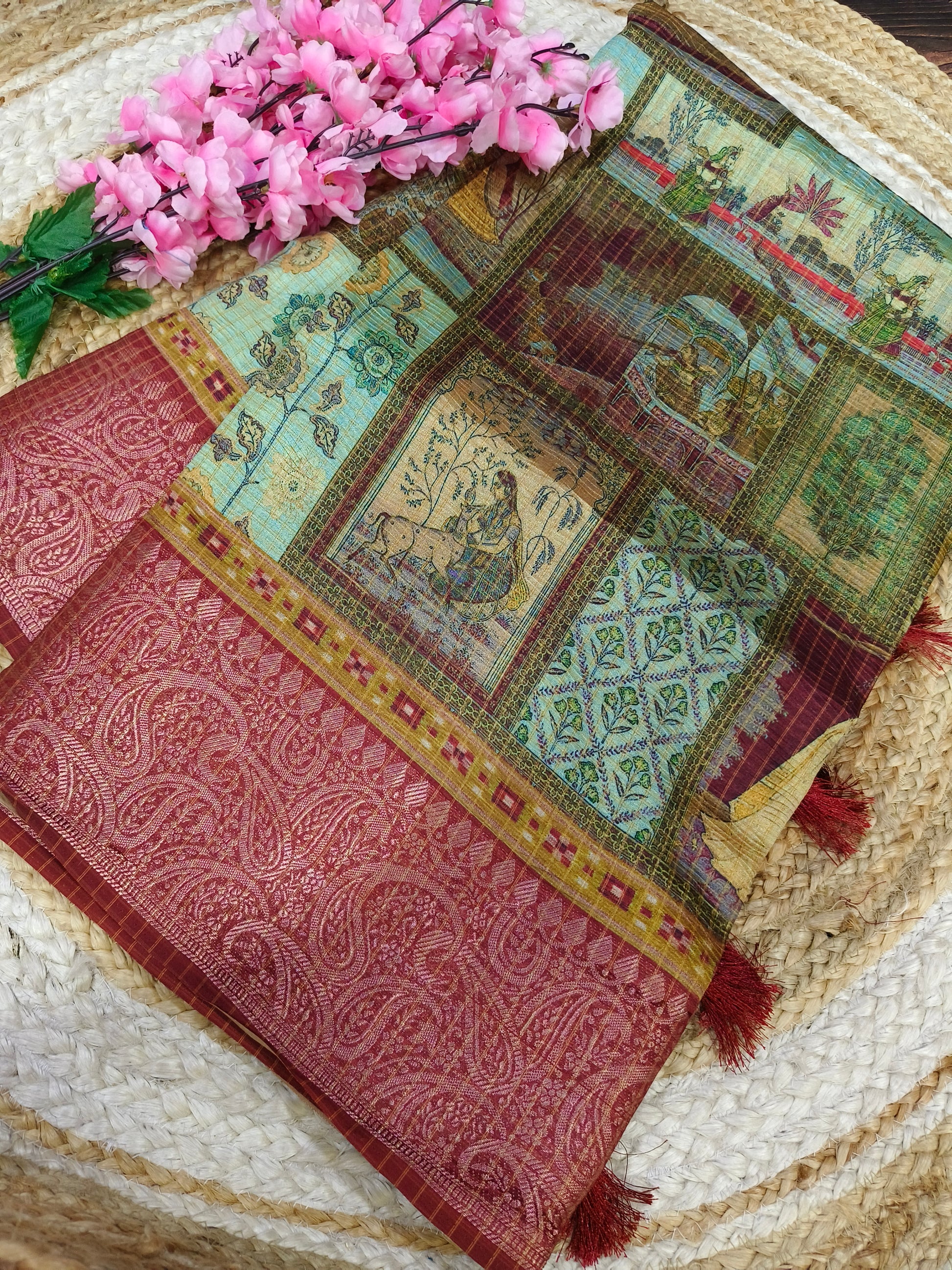 Perfect for festive occasions, cultural events, or statement office wear, this saree brings together heritage art and modern grace effortlessly.