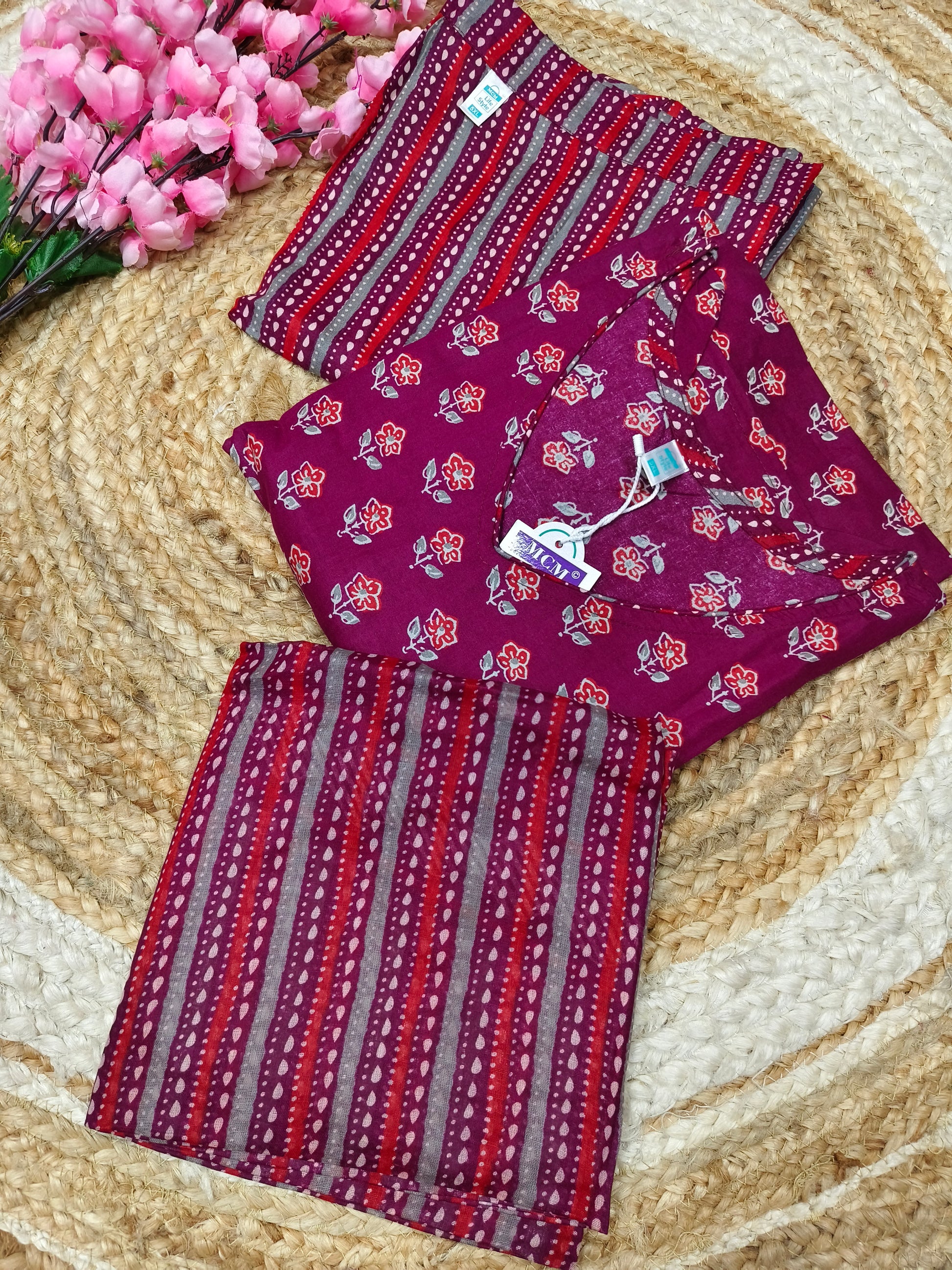 Pure cotton fabric Kurta comes with pant and duppata 3/4 sleeve