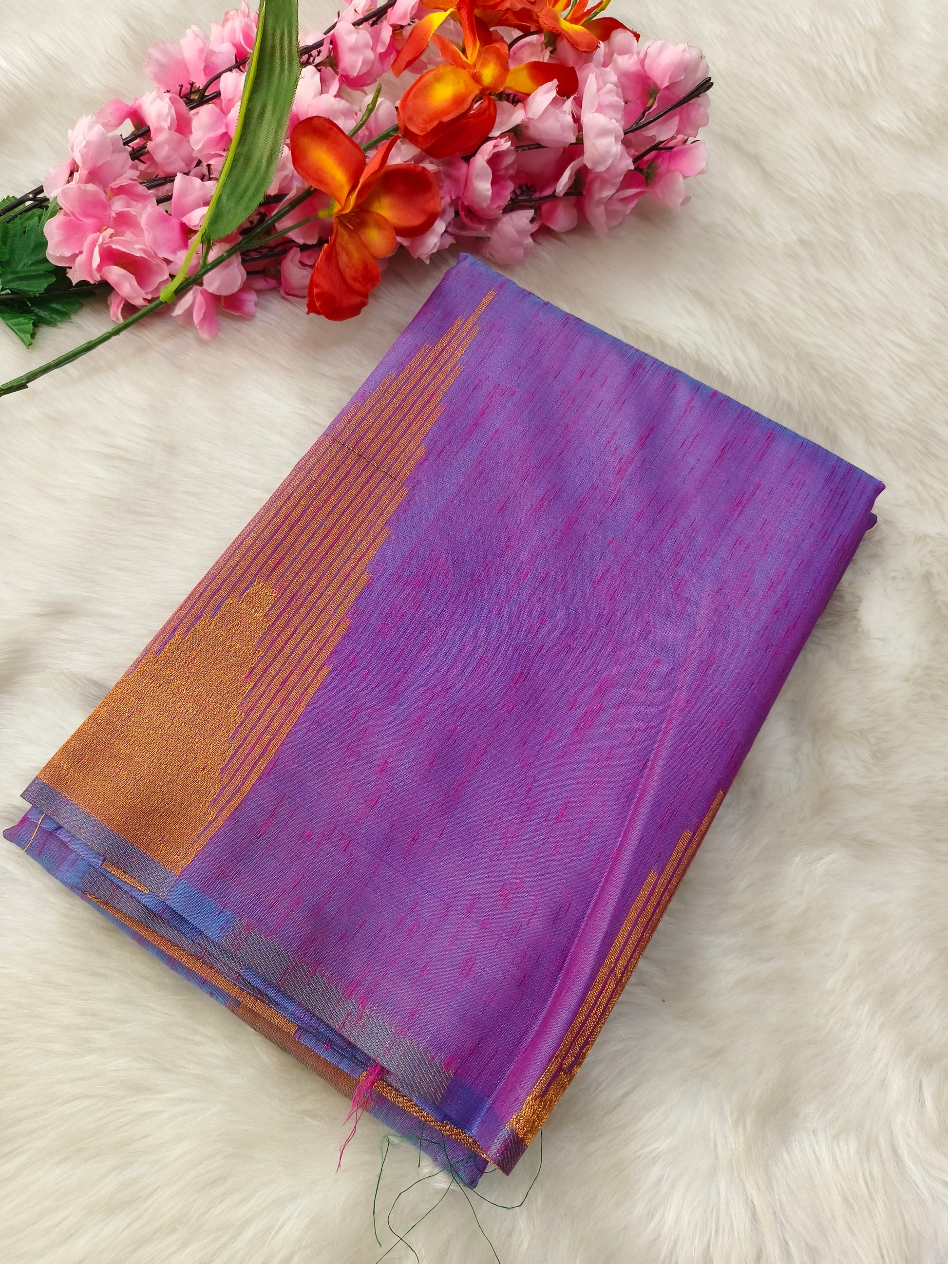Elevate your wardrobe with this beautiful semi viscose silk saree with & gold temple Border.