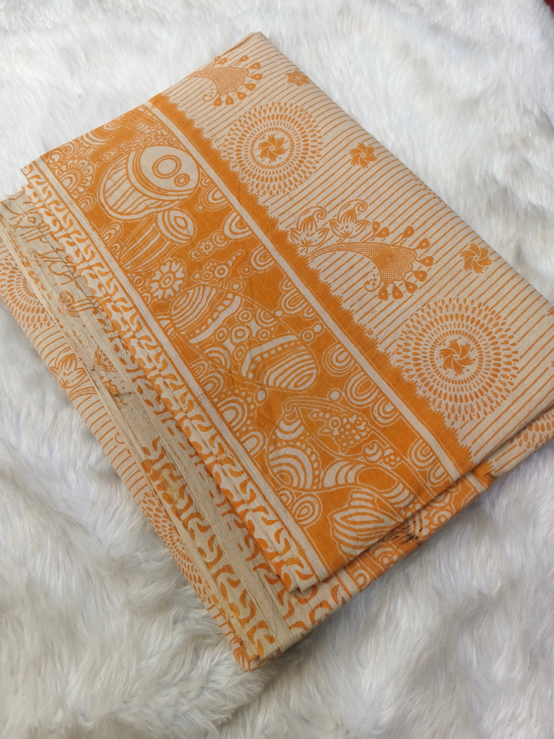 Orange pure cotton Kalamkari saree