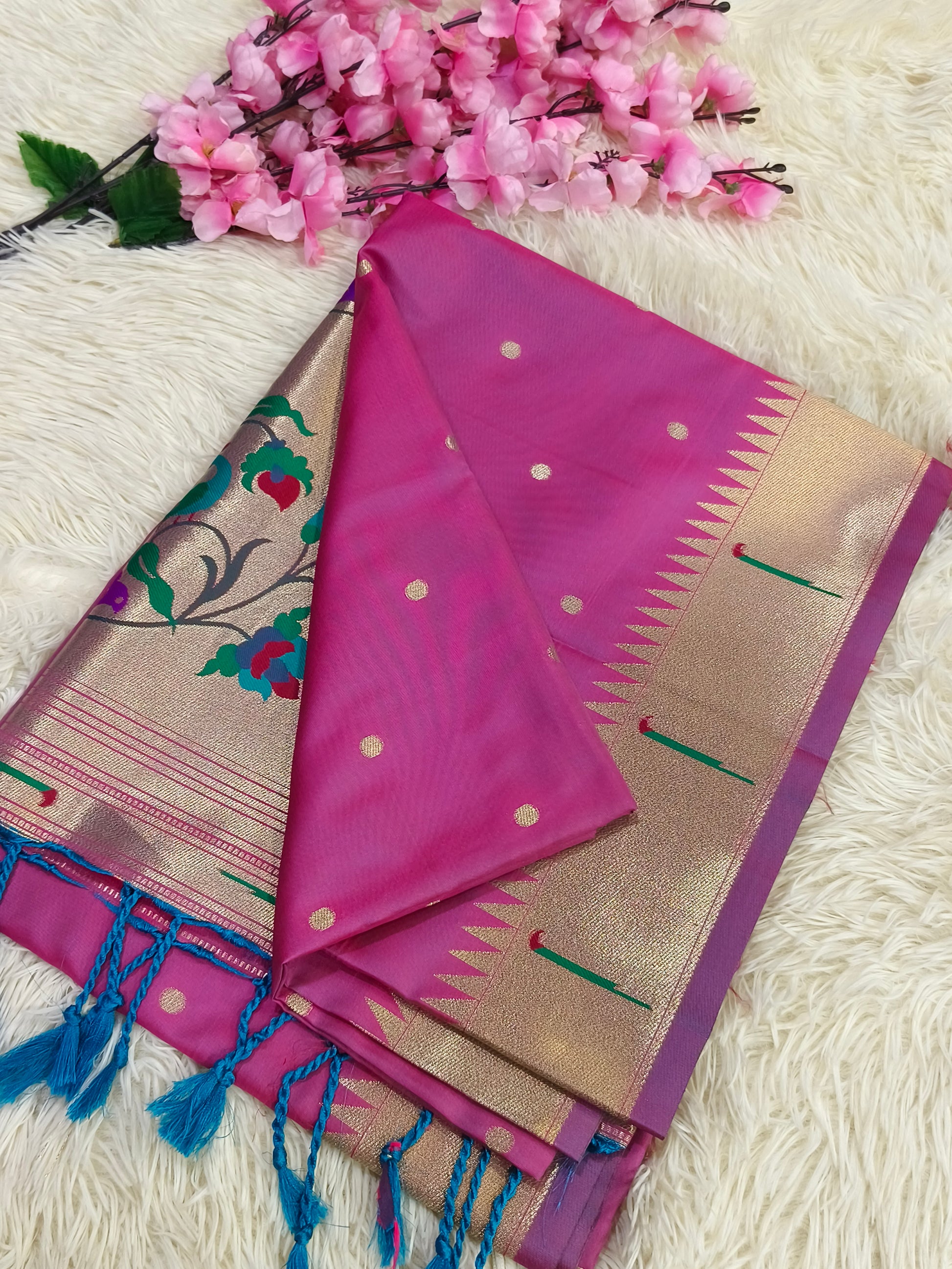 Old rose Pink Paithani silk saree