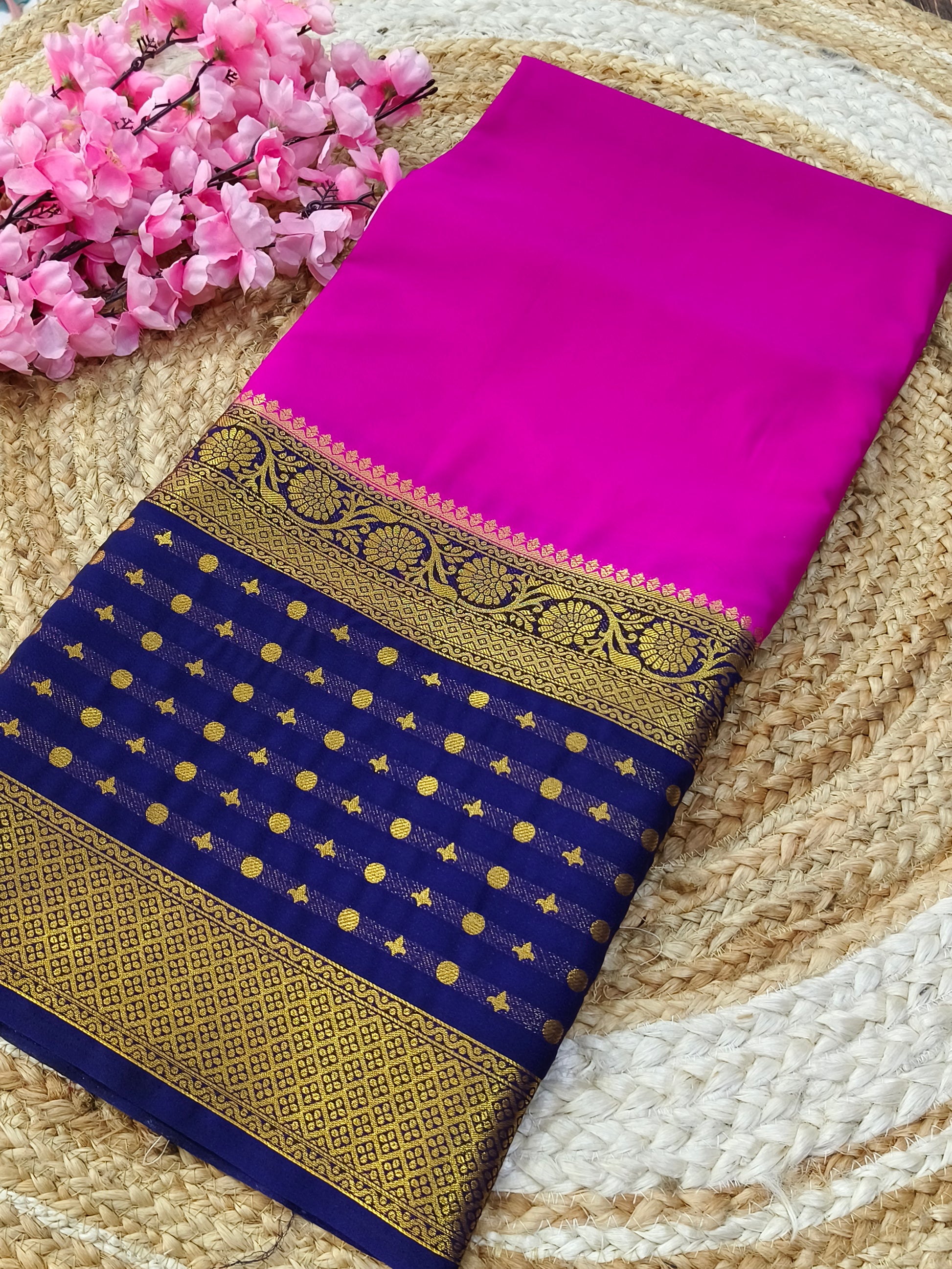 Megentha pink with purple semi Mysore crepe silk saree