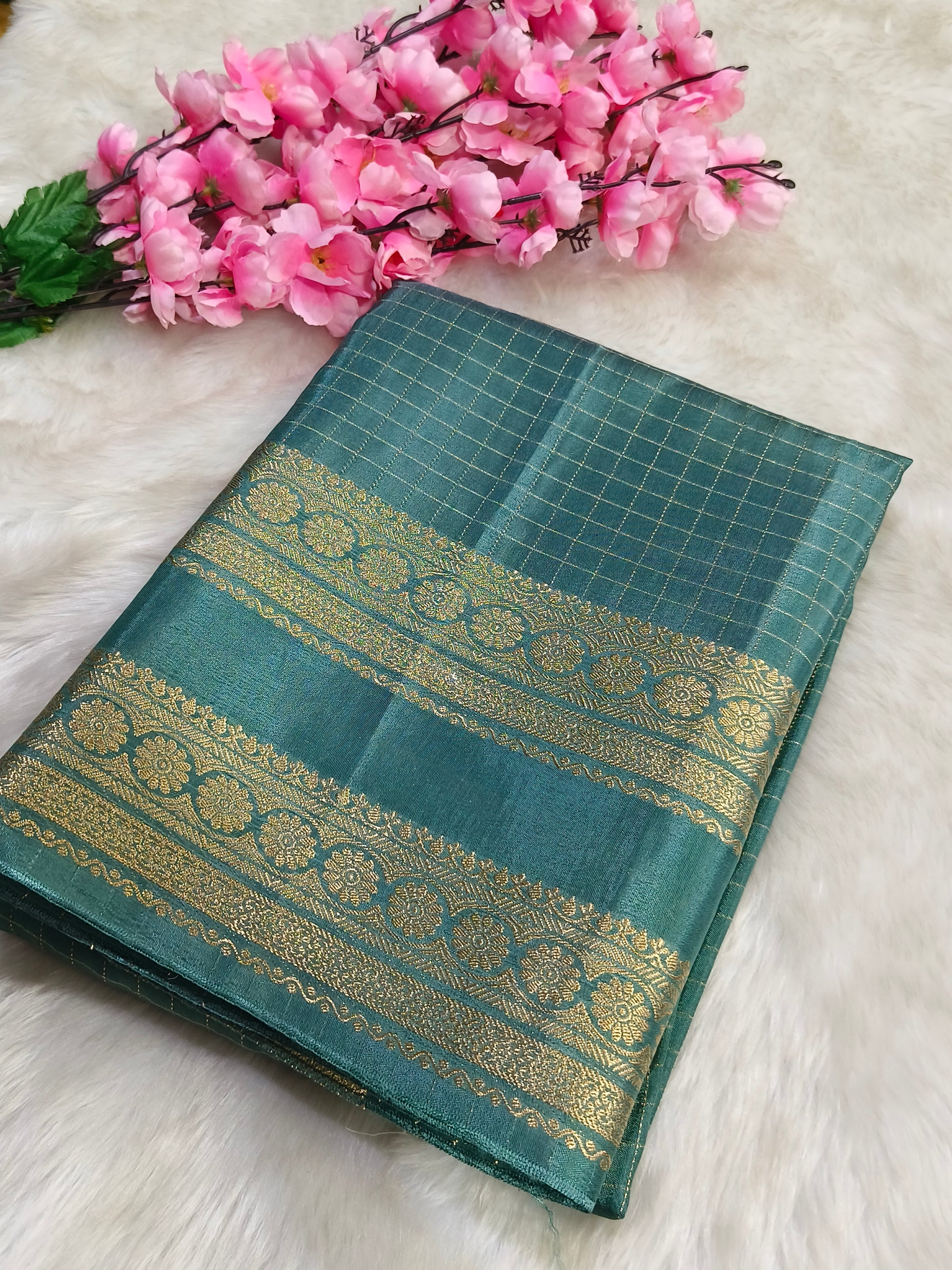 Teal green Munga silk saree