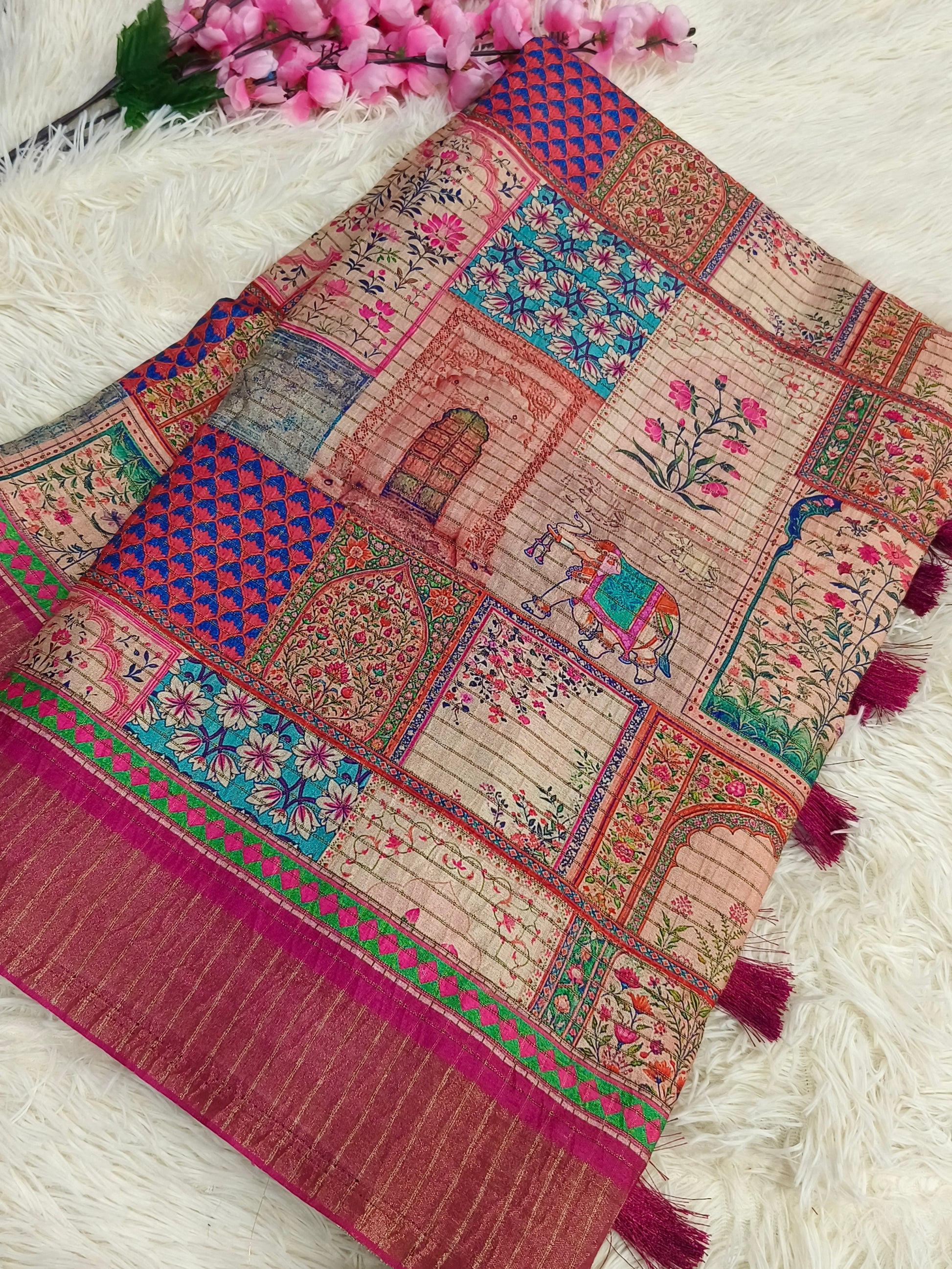 Perfect for festive occasions, cultural events, or statement office wear, this saree brings together heritage art and modern grace effortlessly.